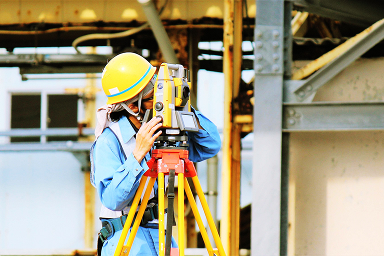 また、実際に生活する為の水道・下水道等の設備関係は通っているのかなどの調査を行い、あわせて現地の実際の境界・周辺状況や広さ・高低差を測量する調査です。